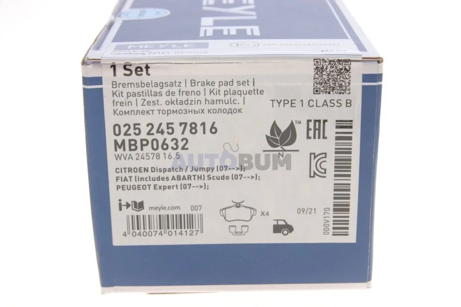 Колодки тормозные (задние) Fiat Scudo/Peugeot Expert 1.6D/2.0D 07- MEYLE 025 245 7816