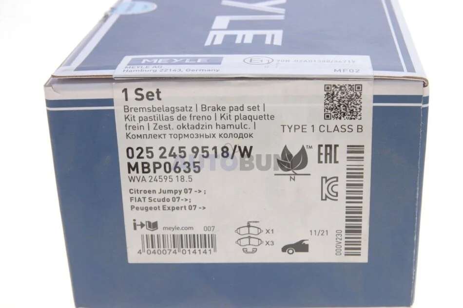 Комплект дисковых тормозных колодок MEYLE 025 245 9518/W