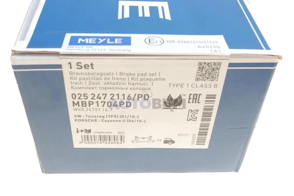 Комплект гальмівних колодок MEYLE 025 247 2116/PD