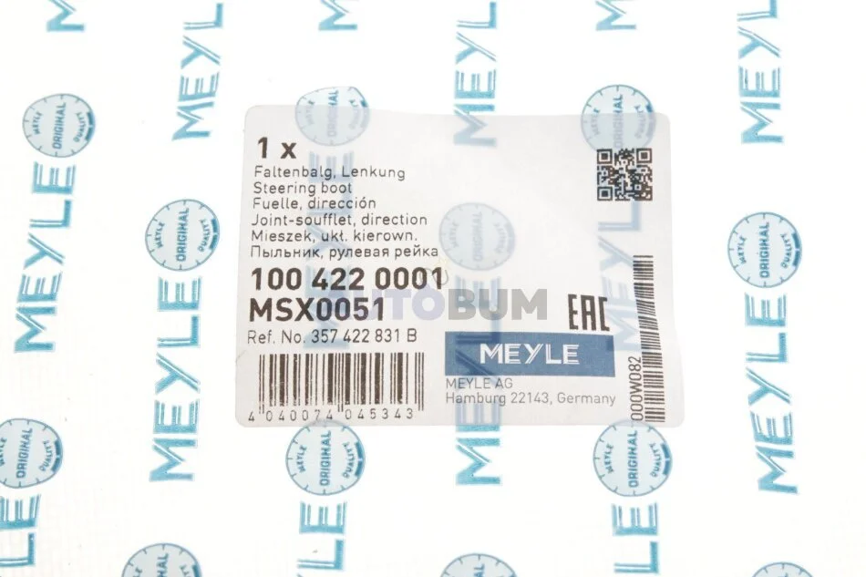 Пильник кермової рейки MEYLE 100 422 0001