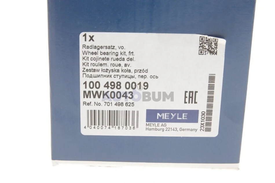 Підшипник маточини (комплект) MEYLE 100 498 0019