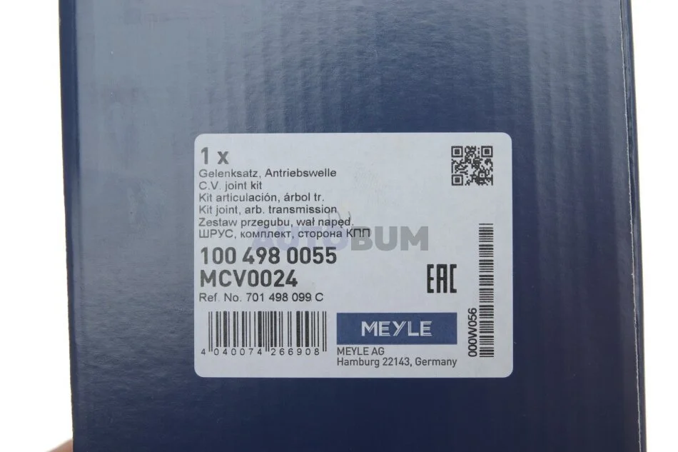 ШРКШ ЗОВН. К-КТ. VW T4 1.9D/2.0/2.4D/2.5 90-, 1.9TD 92-, 2.5TDI 95- MEYLE 100 498 0055
