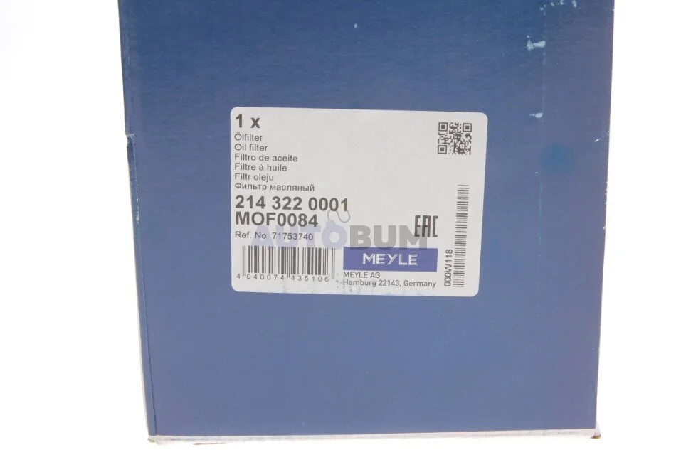 Фильтр масляный d=110mm, h=143mm, d2=72mm, 3/4-16UNF MEYLE 214 322 0001