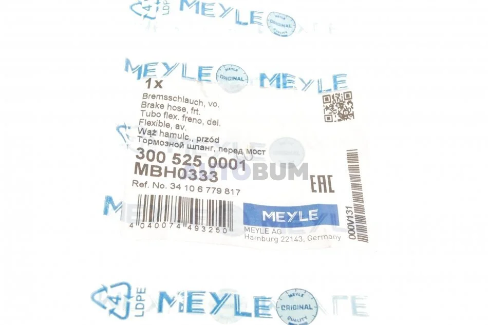 Шланг гальмівний MEYLE 300 525 0001