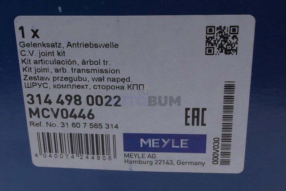 Аналоги "314 498 0022 MEYLE":