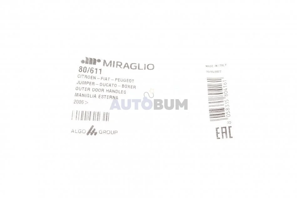 - MIRAGLIO 80/611 подходит к маркам/моделям авто: