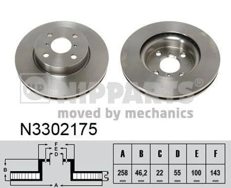 Диск тормозной TOYOTA YARIS 06- (Франция) передний вент.D=258мм. NIPPARTS N3302175