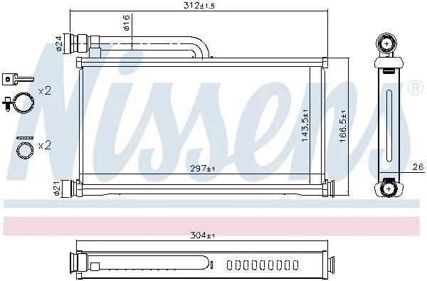Размеры радиатора: 303x144x26