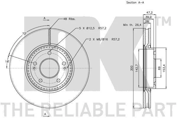 Диск гальмівний перед. Hyunday Sonata V 05-, i40 CW 11-, Kia Sportage 10- NK 203422