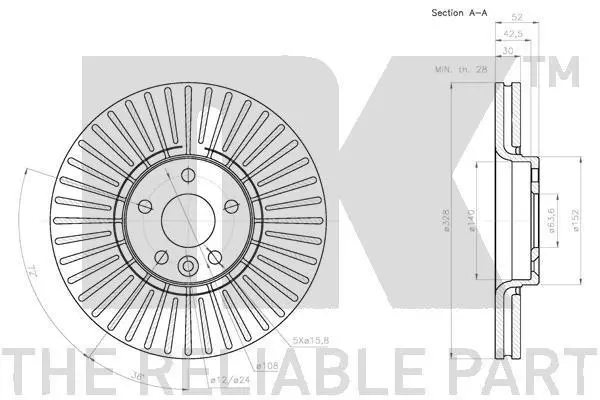 Тормозной диск передний вентилируемый VOLVO XC60 2.0-3.0 08- NK 204860