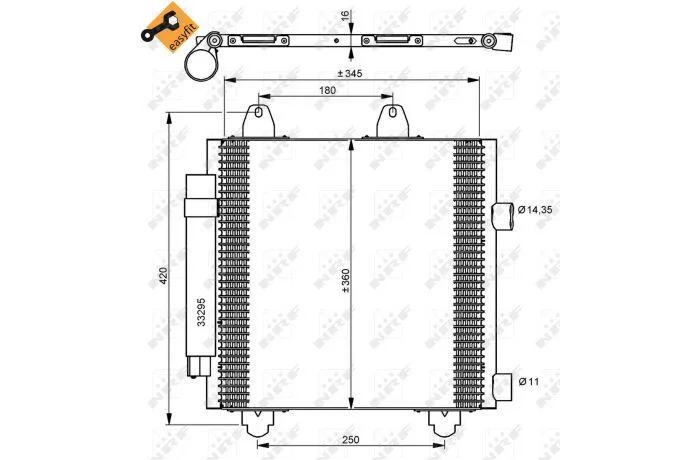 Размеры радиатора: 350 - 360 - 16