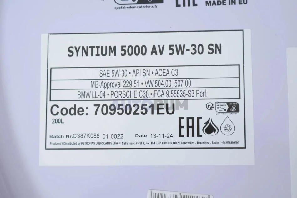 Олива моторна SYNTIUM 5000 AV 5W-30 SN (200L) Petronas 70950251EU