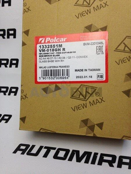 Скло дзеркала зовн. прав з обігрівом AUDI A4 B5 11.94-09.01 Polcar 1332551M