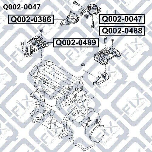 Подушка двигуна задня Mazda 3 1.3/1.6 (BK) 2003-2008/Volvo C30, C70 II, S40 II, V50/Ford C-Max, Focu Q-fix Q002-0047