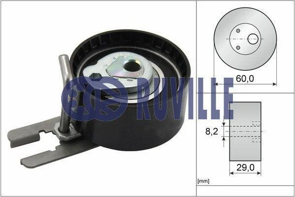 Ролик ГРМ натяжна TOYOTA Aygo 05-14, FORD Focus II 04-11, FIAT Scudo 07-16, PEUGEOT Bipper 08-17, CITROEN Berlingo 08-18, MAZDA 3 BL 09-13, SUZUKI SX-4 06-14, VOLVO V70 07-16, MINI Cooper R56 07-14 RUVILLE 55953