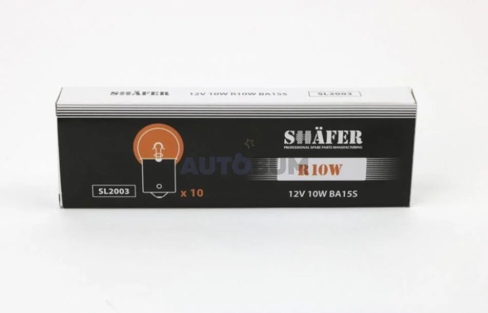 ЛАМПА РОЗЖАРЮВАННЯ 12V 10W R10W BA15S (КАРТОННА УПАКОВКА ПО 10ШТ) SHAFER SL2003