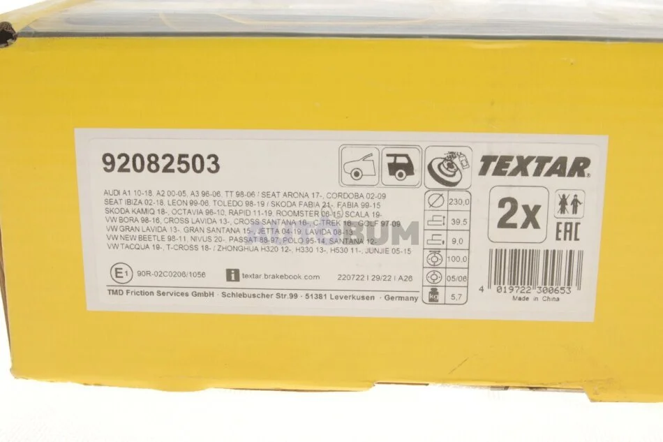 - TEXTAR 92082503 подходит к маркам/моделям авто: