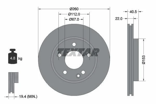 Диск торм. MB A-CLASS W168 перед.. 1 шт (min 2 шт TEXTAR 92091303