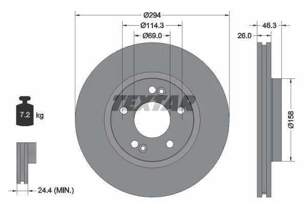 Диск тормозной HYUNDAI SANTA FE -06 перед.вент. (с покрытием PRO) TEXTAR 92136403