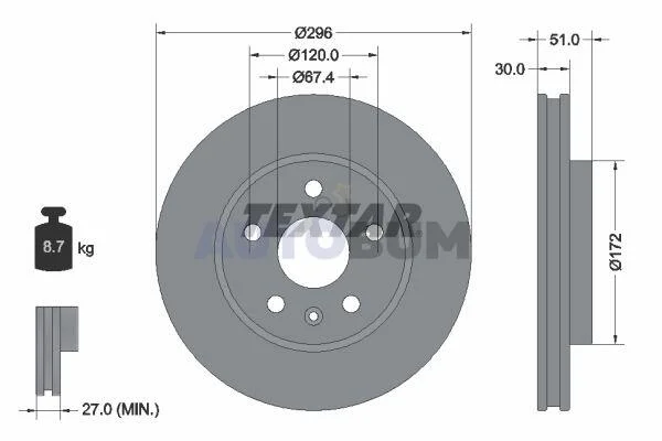 Диск гальмівний (передній) Opel Insignia A 08- (296x30) PRO+ TEXTAR 92186905