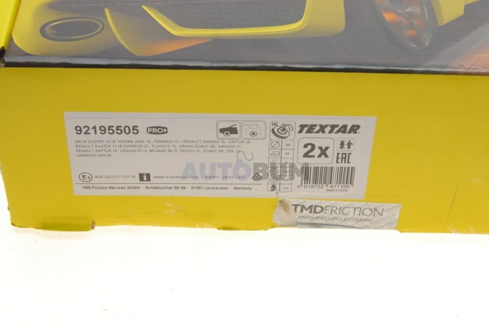 - TEXTAR 92195505 подходит к маркам/моделям авто: