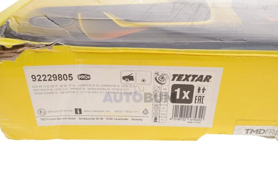 - TEXTAR 92229805 подходит к маркам/моделям авто: