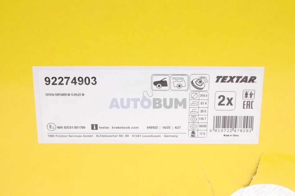 Аналоги "92274903 TEXTAR":