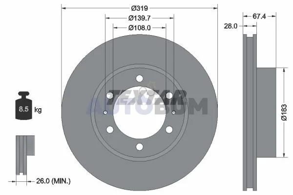 Толщина тормозного диска (мм): 28