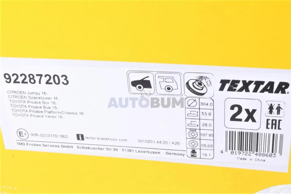 - TEXTAR 92287203 подходит к маркам/моделям авто: