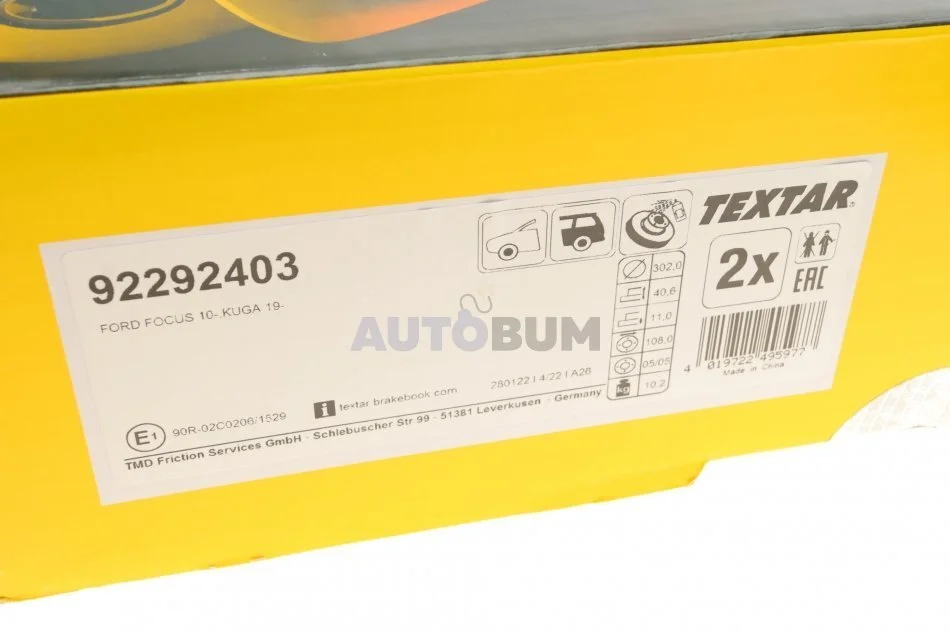 Диск гальмівний TEXTAR 92292403