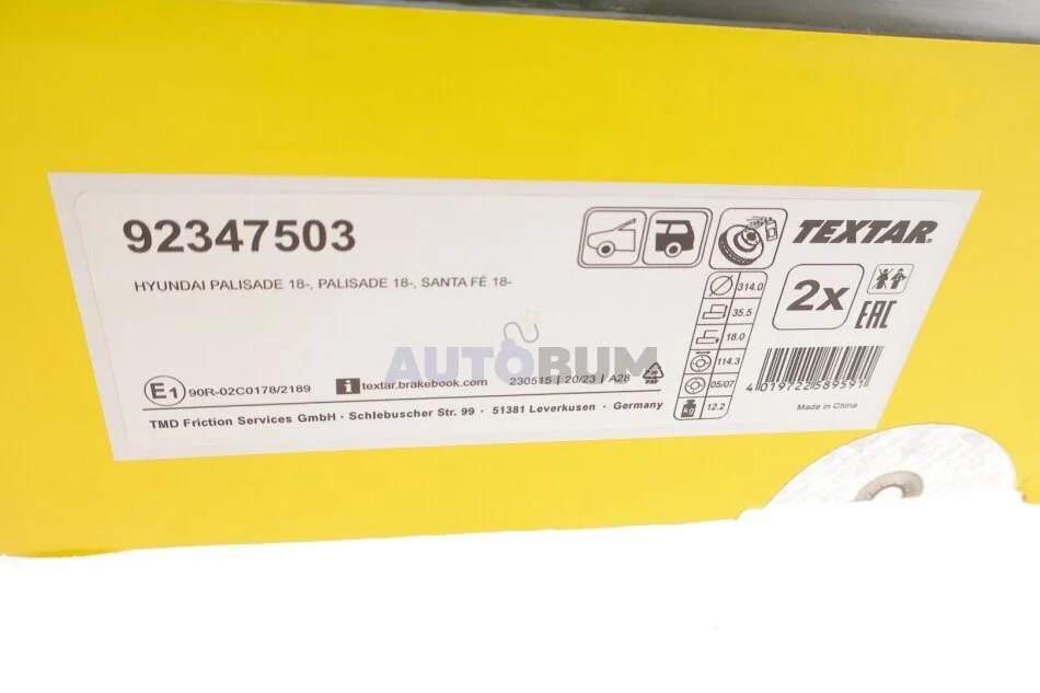 Диск гальмівний TEXTAR 92347503
