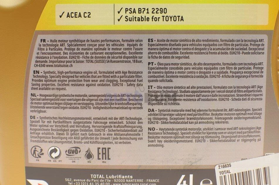 Олива моторна 5W-30 4L Quartz INEO ECS PSA B71 2290, FIAT 9.55535-S1, IVECO FPT SC1, ACEA C2 TOTAL 216635