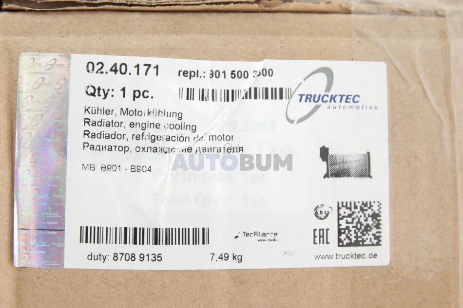 Радиатор воды TRUCKTEC 02.40.171