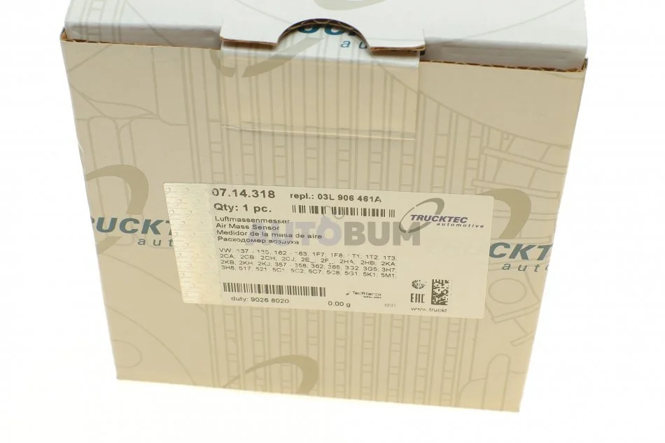 Расходомер воздуха, VW Crafter - T-5 - T-6 - Caddy III / IV - Amarok, 2.0 TDI, 2009> TRUCKTEC 07.14.318