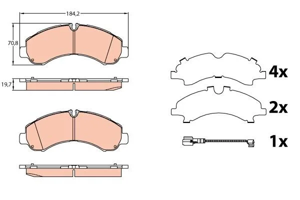 Комплект гальмівних колодок передн, MITSUBISHI CANTER (FB7, FB8, FE7, FE8) VII 3.0D 09.09-11.10 TRW GDB3645