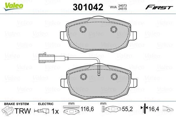 Комплект гальмівних накладок, дискове гальмо Valeo 301042