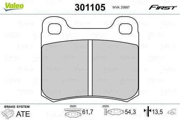 Комплект гальмівних накладок, дискове гальмо Valeo 301105