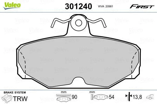 Комплект гальмівних накладок, дискове гальмо Valeo 301240