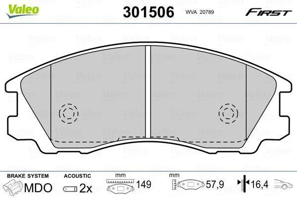 Комплект гальмівних накладок, дискове гальмо Valeo 301506