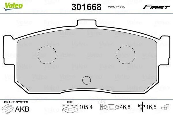 Комплект гальмівних накладок, дискове гальмо Valeo 301668