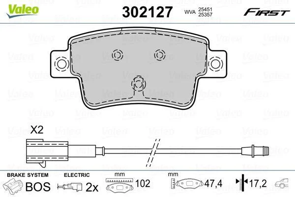 Комплект гальмівних накладок, дискове гальмо Valeo 302127