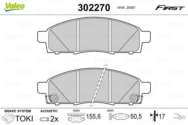 Комплект гальмівних накладок, дискове гальмо Valeo 302270