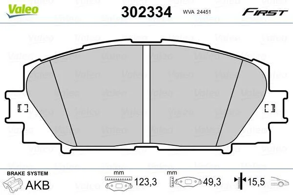 Комплект гальмівних накладок, дискове гальмо Valeo 302334