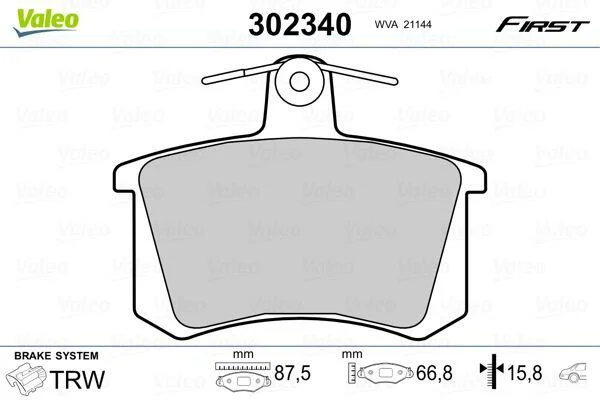 Комплект гальмівних накладок, дискове гальмо Valeo 302340