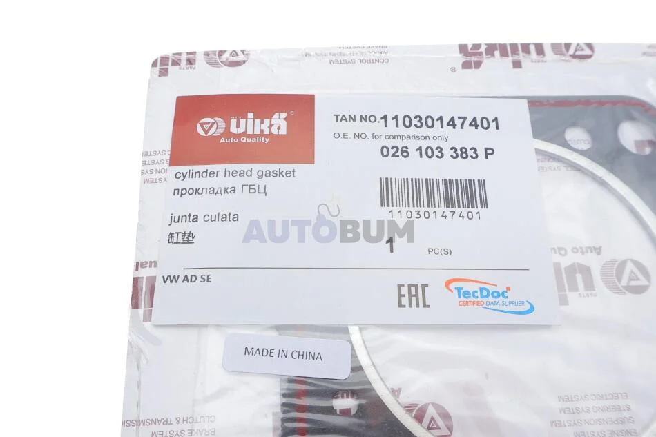 Прокладка головки (азбест) VW Golf (82-98), Jetta (82-92), Passat (82-97) / Audi 100 (83-93), 80 (82-96) Vika 11030147401