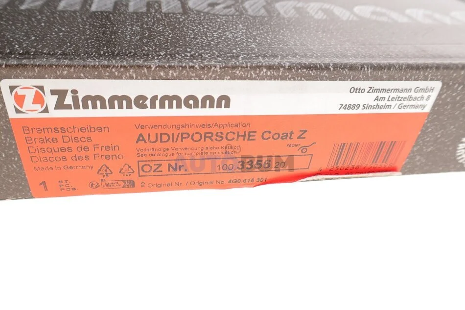 Диск тормозной AUDI A4/A5/A6/A7/Q5 07- перед.вент.Coat Z ZIMMERMANN 100.3356.20