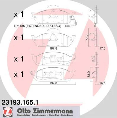 Колодки гальмівні дискові, комплект ZIMMERMANN 23193.165.1