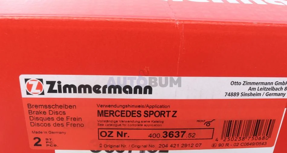 - ZIMMERMANN 400.3637.52 подходит к маркам/моделям авто: