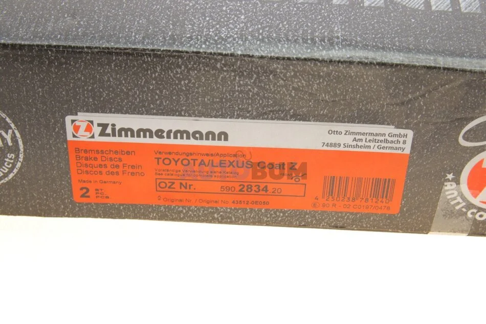 - ZIMMERMANN 590.2834.20 подходит к маркам/моделям авто: